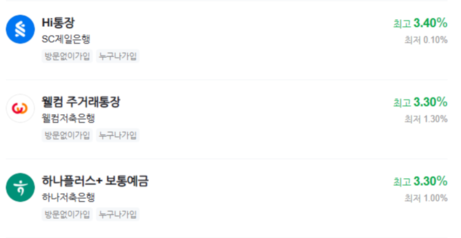 금리 연 2% ~ 3% 수준으로 일반 입출금 통장보다 높음